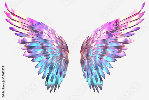 © Paula, Fototapeta premium holographic angel wings on a white background Generative AI