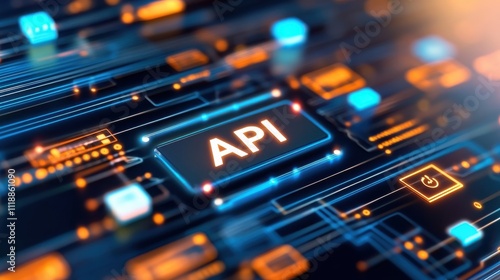 Obraz premium Holographic "API" Interface Surrounded by Digital Connectivity Icons