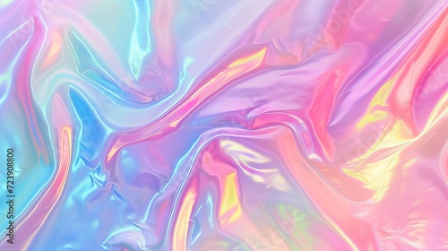 Fototapeta premium Holographic background shimmering with rainbow colors. Liquid waves with foil...