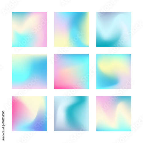 © Marina, Fototapeta premium Holographic backgrounds set with smooth multicolor textures. Pastel trendy blurred template for cover, banner, poster design