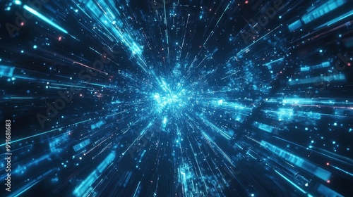 Naklejka premium Holographic blue beams of light moving dynamically through a tech-inspired...