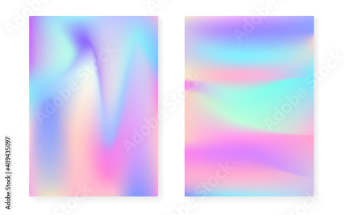Fototapeta premium Holographic cover set with hologram gradient background.