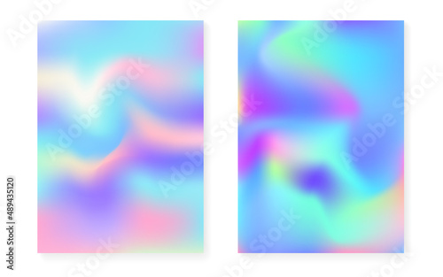 Fototapeta premium Holographic cover set with hologram gradient background.