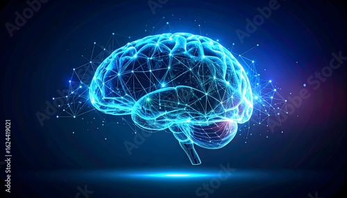 © Desmon, Fototapeta premium Holographic 3D AI brain mesh