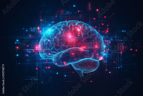 © Stella, Obraz premium Holographic 3D model of human brain with glowing connections and advanced medical data analysis