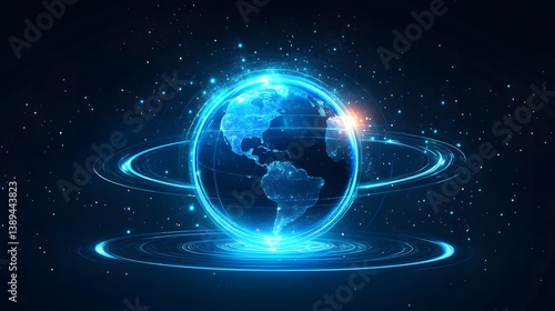 © Ayo, Obraz premium Holographic Earth in Digital Space