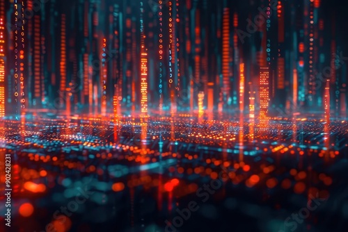 Naklejka premium Holographic economic drop, virtual business downturn, futuristic price fall, dark digital theme