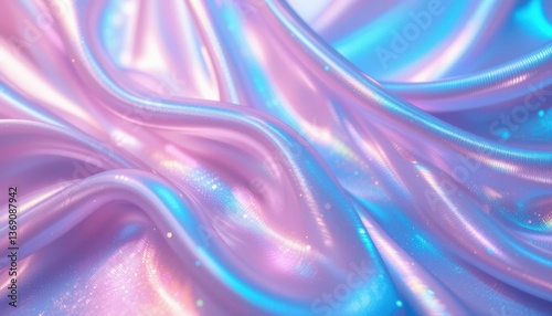 Fototapeta premium Holographic Fabric Texture Dreamy Pink and Blue Iridescent Waves