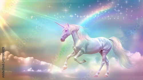 © PixxStudio, Fototapeta premium Holographic fantasy rainbow unicorn background