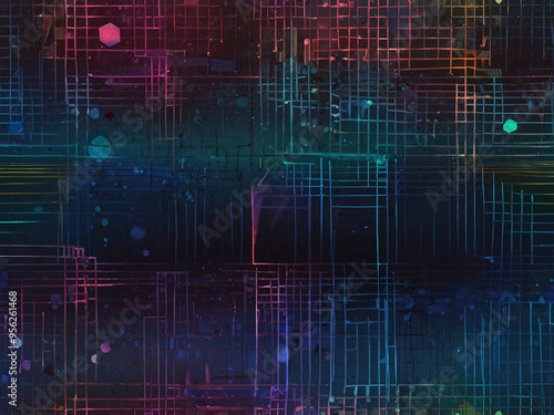 © claudunia, Fototapeta premium Holographic Gradient OverlayIsometric Grid with 3D Shapes