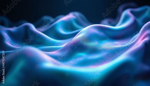© Дмитрий Рожков, Obraz premium Holographic Heat Waves: Emerald, Sapphire, Amethyst Fluid Motion Against Charcoal Backdrop