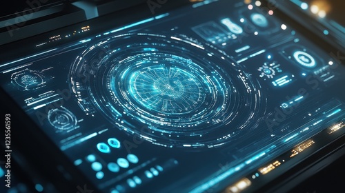 © Chantip, Obraz premium Holographic interface displaying genetic modification process top view technology tone Colored pastel.