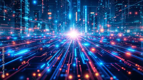 © ASPmedia, Naklejka premium holographic interface with city background . Generative AI