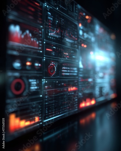 © grey, Fototapeta premium Holographic interface with glowing data panels, showcasing futuristic digital technology and analytics.