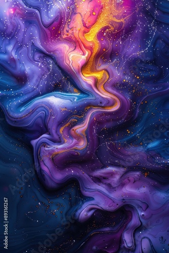 © Muhammad, Obraz premium Holographic iridescent fluid texture background.
