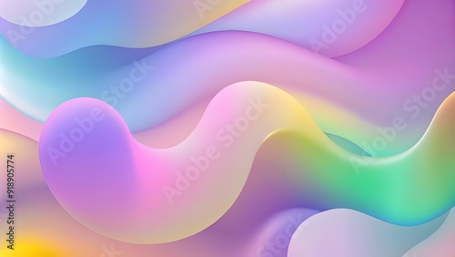 Fototapeta premium Holographic liquid background. Holograph blue, yellow, pink colors texture with foil effect. Hyalographic iridescent backdrop. Pearlescent gradient for design prints. 3d soft Metallic texture