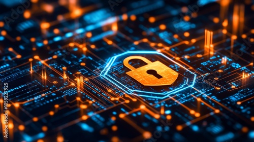 Fototapeta premium Holographic Lock Icon Surrounded by a Shield A Symbol of Advanced Security in Technology