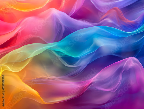 © AI Background , Obraz premium Holographic neon background ,Colorful psychedelic abstract. Pastel color waves for background