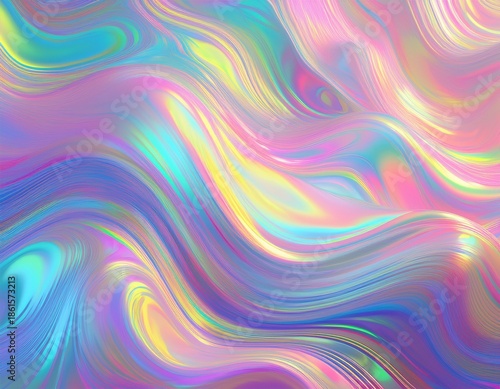 Obraz premium holographic neon background colorful psychedelic abstract pastel color waves...