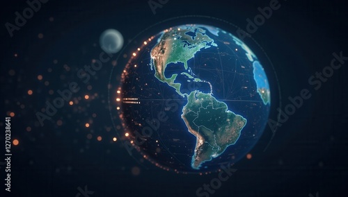 Fototapeta premium Holographic Planet Visualization with High-Tech Scanning Interface