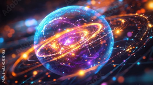© SepazWorks, Obraz premium Holographic Quantum Interface Glowing with Intricat