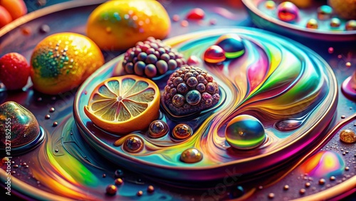 Fototapeta premium Holographic Rainbow Liquid Metallic Mosaic Food Art: Vibrant Colorful Digital...