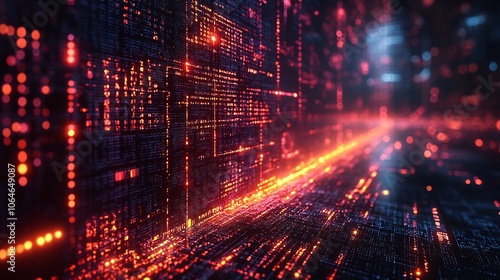 © EpochXstudio, Obraz premium Holographic screen layers of bypassed code representing unauthorized access and digital intrusions in a tech atmosphere