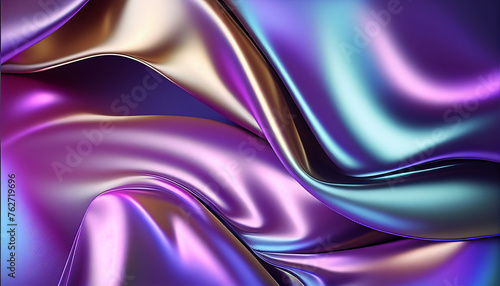 Fototapeta premium Holographic silk background. abstract iridescent gradient background. Abstract fluid iridescent holographic metalic shiny curved wave in motion colorful background 3d render. Ai generated image