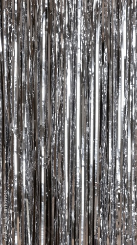 Obraz premium Holographic silver foil fringed curtain backdrop for festive event design