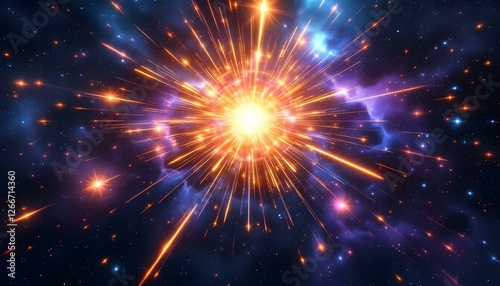 Fototapeta premium Holographic solar flare in cosmic fireworks display background, glaxy background, significantly, scientific glaxy concept, generated with ai