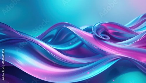 © Chainarong, Obraz premium Holographic Teal and Magenta Waves Abstract 3D Digital Art