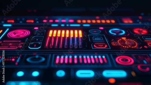 Obraz premium Holographic UI customization interfaces, neon design elements, futuristic...