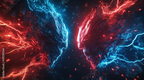 © gen_pick, Fototapeta premium Holographic Versus Logo with Neon Lightning Flashes for Cyber Sport Tournament Screen
