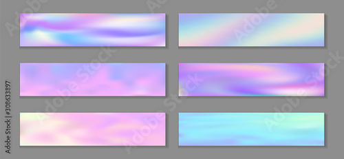 © SunwArt, Fototapeta premium Holography blurred flyer horizontal fluid gradient mermaid backgrounds vector set. Beautiful
