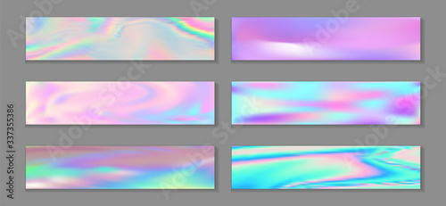 Fototapeta premium Holography vivid banner horizontal fluid gradient mermaid backgrounds vector collection.