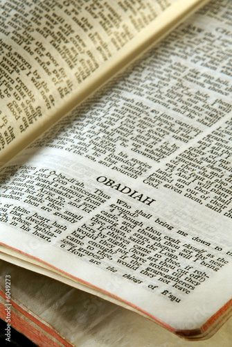 © Stephen Orsillo, Fototapeta premium holy bible open to the book of obadiah in the old testament