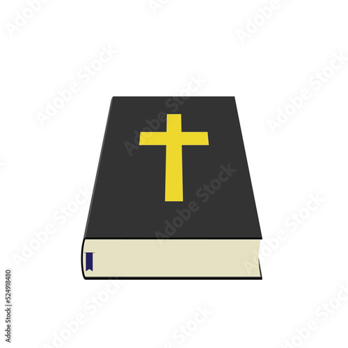 © PJVector, Fototapeta premium Holy Bible with Blue Bookmark and Yellow Cross Perspective Art.