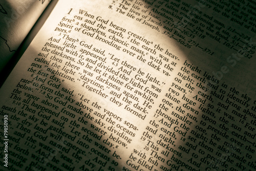 © littleny, Obraz premium Holy Bible with light casting on Genesis