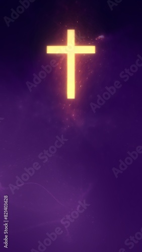 Obraz premium Holy Christian Cross on Vertical Violet Purple Particle Copy Space Background