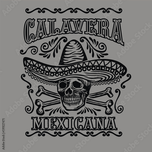 Obraz premium Holy Death, Day of the Dead, mexican skull in sombrero, grunge vintage design t shirts