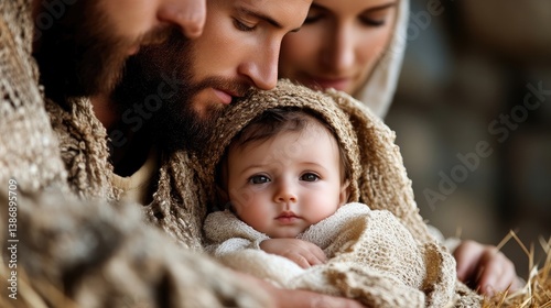© MAKASIHMAS SIDNEY, Obraz premium Holy Family, a tender depiction of the baby Jesus