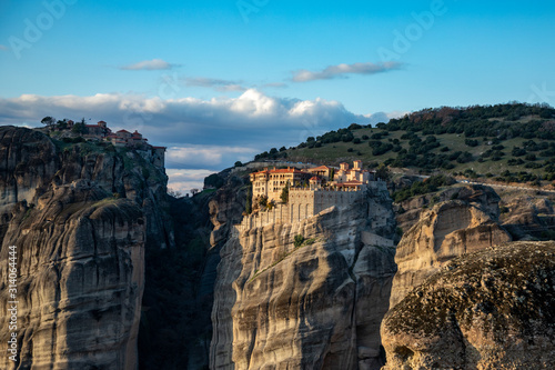 © Giuma, Fototapeta premium Holy Monastery of Transfiguration of Jesus (Great Meteoron) and the monastery of Varlaam. The Monasteries of Meteora at sunset an UNESCO World Heritage in Kalambaka (Kalabaka), Greece.