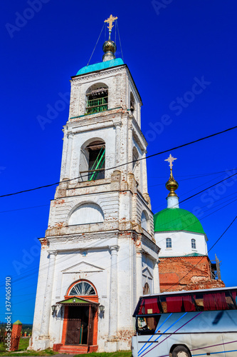 © olyasolodenko, Obraz premium Holy Trinity Church in the village Karacharovo near Murom, Russia