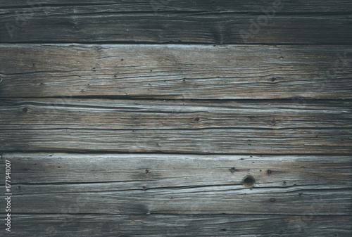 © Patrick Daxenbichler, Fototapeta premium Holz Hintergrund rustikal, Bretterwand aus düsterem Holz, Vignettierung