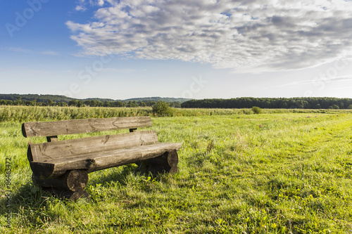 Fototapeta premium Holzbank auf Wiese