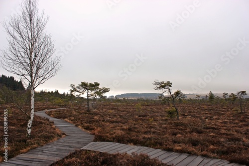 Obraz premium Holzbohlenweg durch das Schwarze Moor in der Rhön