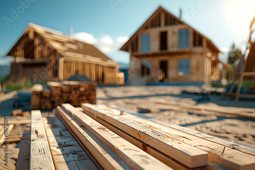 © ABS, Obraz premium Holzhäuser im Rohbau in Außenansicht