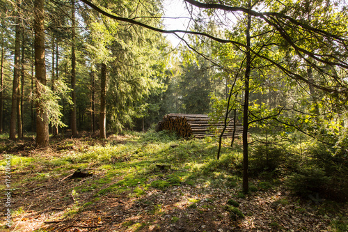 Fototapeta premium Holzstapel im Herbstwald