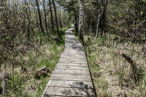 Fototapeta premium Holzsteg durch eine Moorlandschaft