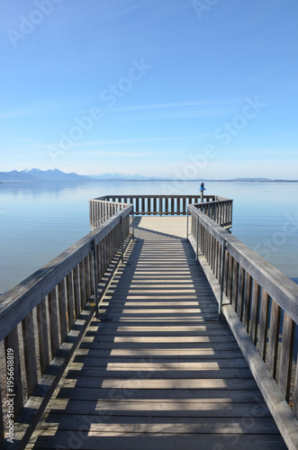 Fototapeta premium Holzsteg in Chieming am Chiemsee